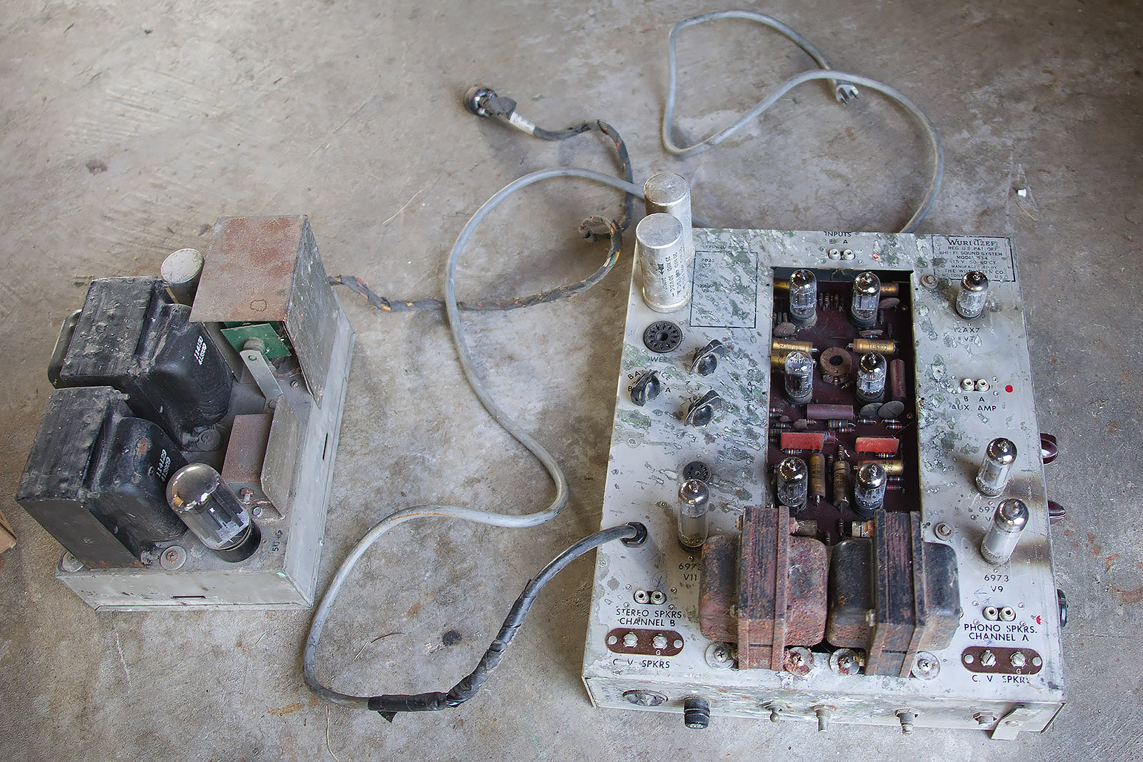 The amp's high voltage should NOT be applied till it has been recapped. Failure to do so can destroy the main power tran. On Wurlitzers the amp and power supply for the mechanism are integrated. If there is a 5U4 tube for the amp it can be removed to allow the low voltage circuits to be powered during restoration. On the later stereo amps the high voltage is provided by selenium rectifiers so there is no easy way for those unfamiliar with these circuits to disable those voltages, so it is best to await an amp rebuild.