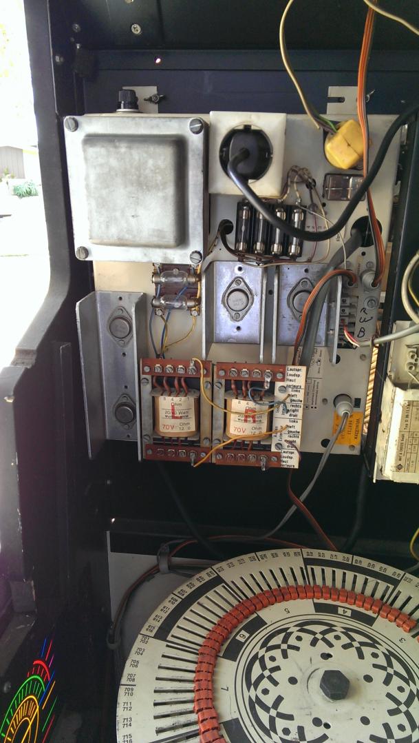 The amps in the german wurlitzers have a sliding switch for stereo and dual channel(kanal) operation. Stereo is normal operation on the machine speakers and dual channel is where one side of the amp controls the machine speakers and the other controls external speakers. Also i have seen on some of these machines whereby the regular volume control was defective and by using the wired remote the sound returned to normal. Theres also a sliding switch on the amp for normal and remote use. There are also two festron tubes which will light up or blow if the amp is overloaded, they are like large glass fuses, one may be blown, For the constant play its possible that the latch pins below the chassis are not being cancelled. and for non selection the latch pins get dirty and will not select if dirty, also the search pins need a bit of lubrication otherwise they won't strike the latch switch properly. The only real way is to remove the chassis from the machine, difficult enough job