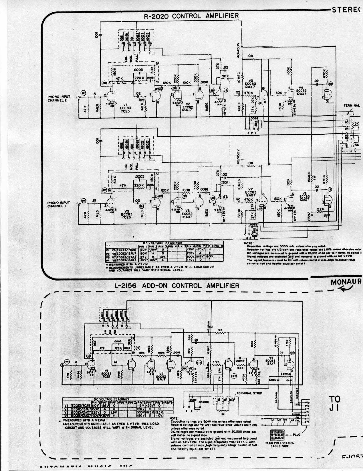 http://www.verntisdale.com/schem/conta.jpg Check for the presence of these parts and their values. A technician who writes in Always jukin has long advocated modding magnetic input on AMi and later Rowe machines to use a ceramic cart. I can't see a good reason for doing this as even the basic magnetic's used in this sort of setup is superior to any ceramic. The -only- advantage I see in a ceramic is that they generally can tolerate heavier tracking force that these crude, unbalanced juke arms impose on pickup and record. Since you linked to an E-bay seller who offers a cart he claims to be suitable for AMI arms, I'd ask him for some actual data on tracking force and user experience. that cart would certainly be better than either the original or what is there now, but those arms are not well balanced and there is a fair amount of lateral friction and a wide variation of tracking force due to the crude spring used to set the tracking weight.