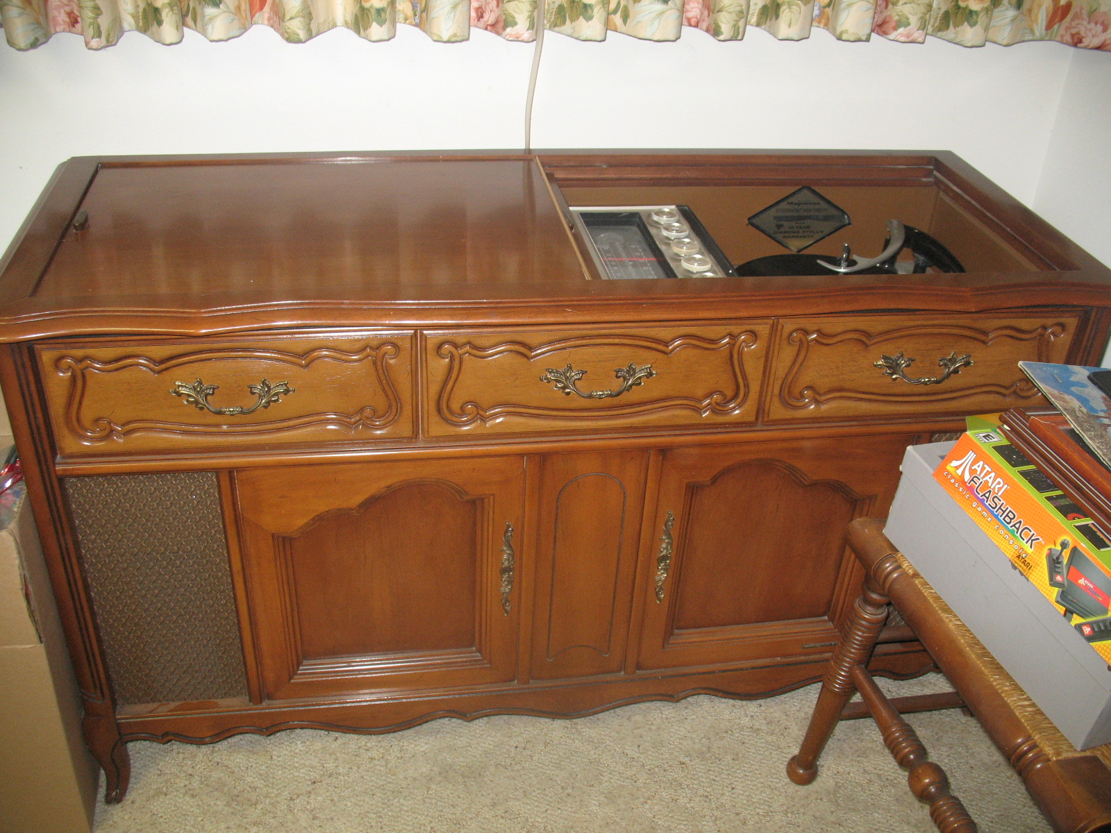 Oh, take off the back and look for the little date stickers on the receiver and amp. There may also be a date sticker on the under side of the turntable. Look for something like "10/65" (October, 1965). You can also find your model numbers if it is not stenciled on the amp, like A575-01-00. The turntable might be W620-xx-xx
