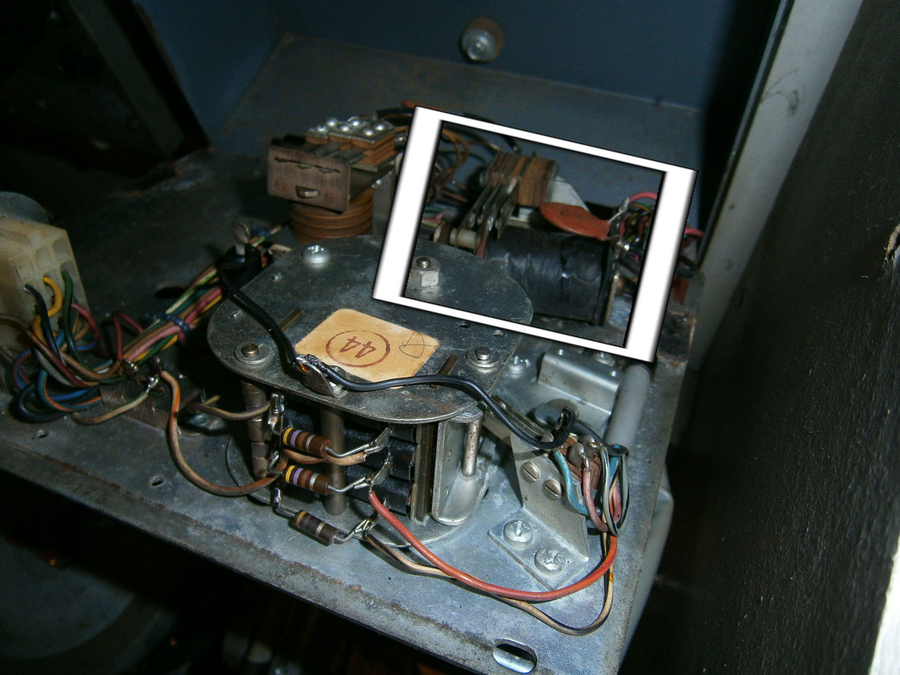 Mech all rebuilt, credit unit works, push buttons work, then nothing! the wiper motor should begin but its dead, I swapped out with another motor that I know works, still dead. A couple of times (but stopped now!!) when I turned the write in carriage by hand it stopped at the correct pins and even the solenoid kicked the pin. The read out carriage begins to spin, locates the correct pin, and everything works from that point. Then record is replaced in magazine, but the solenoid on the read out carriage does not punch the pin back, so the arm swings round again and stops and plays the same record again and again!!!