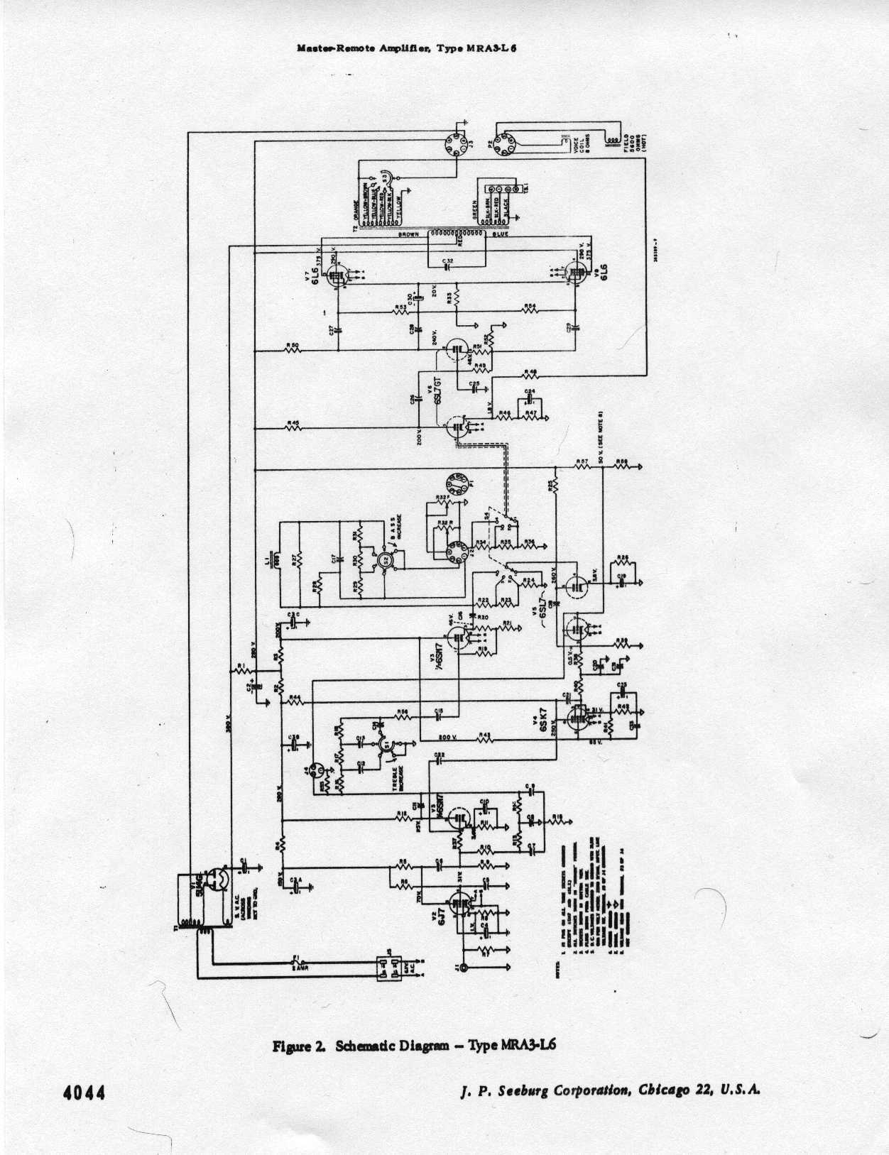 I found a schematic for the MRA3 (SN above 14,000) and spent some time today comparing the AVC section to what I have in the MRA1. I attached a revised schematic, redrawn to show the 6SL7 instead of an empty socket, and laid out like the Seeburg schematic is. The only real differences I see are that R58 (all numbers here are off the MRA3 schematic) is not there, the value of R59 is .1M instead of .27M, and C19 and C23 are both 25 mfd. In addition, C28 is .03 mfd instead of .02mfd. I'll change these out when as I rebuild the amp.